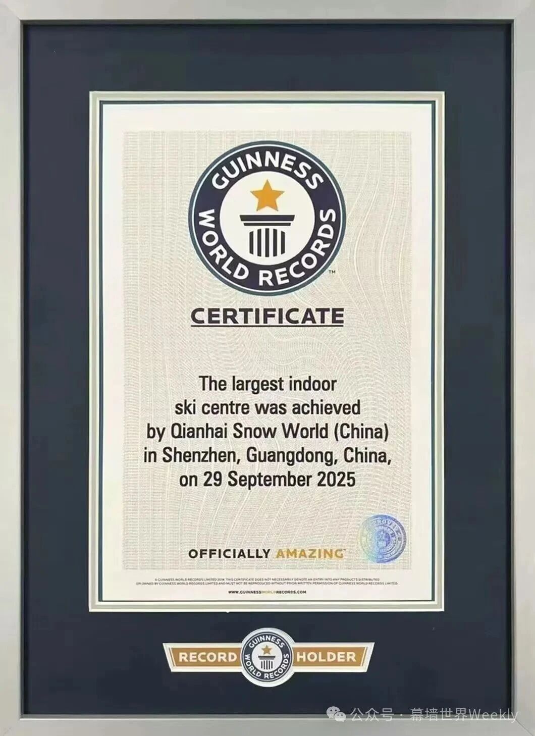 前海冰雪世界获得吉尼斯世界纪录:世界最大室内滑雪中心